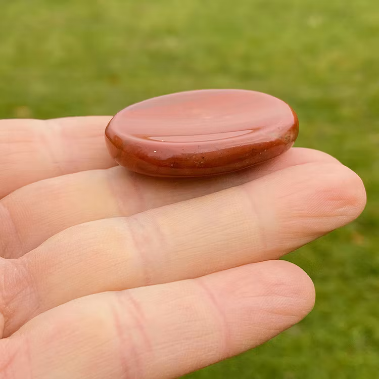 Handsten av röd Jaspis, med slipad skålning Perfekt för tummen.