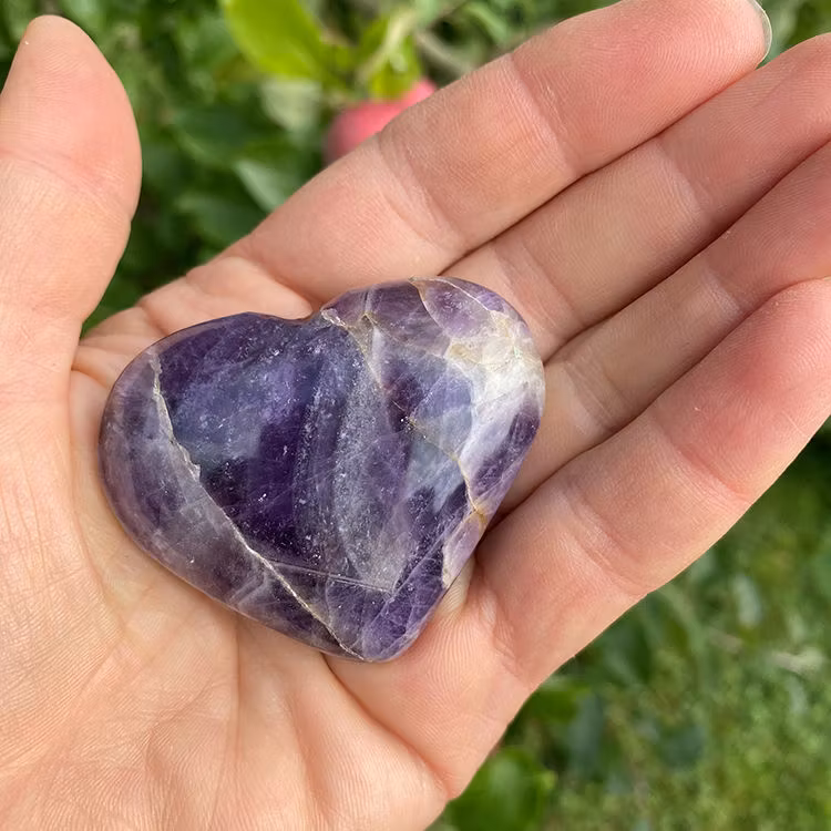 Ametisthjärta kan lindra stress orsakas av relationer samt lindra ångest.