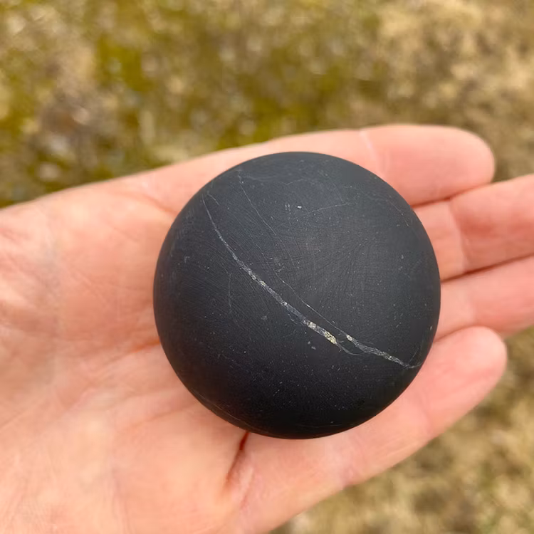 Ett shungitklot är ett elegant och tidlöst föremål, uppskattat för sin djupa svarta färg, lena yta och stilrena uttryck. Den runda formen ger klotet en harmonisk närvaro och gör det till en vacker detalj i hemmet, samtidigt som det ligger behagligt i handen. Varje klot är unikt i struktur, lyster och uttryck.