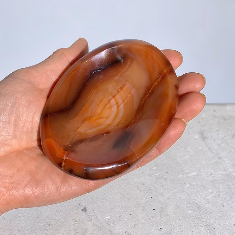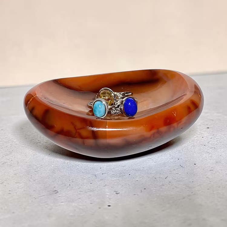 Karneol skål från Madagaskar, en vacker dekorativ skål att ladda dina kristaller eller förvara smycken på.