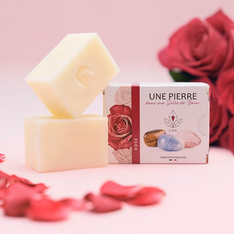 Varje tvål har en överraskningskristall inuti, det kan vara bergkristall, rökkvarts, turmalin, ametist, rosenkvarts, onyx eller svart obsidian.