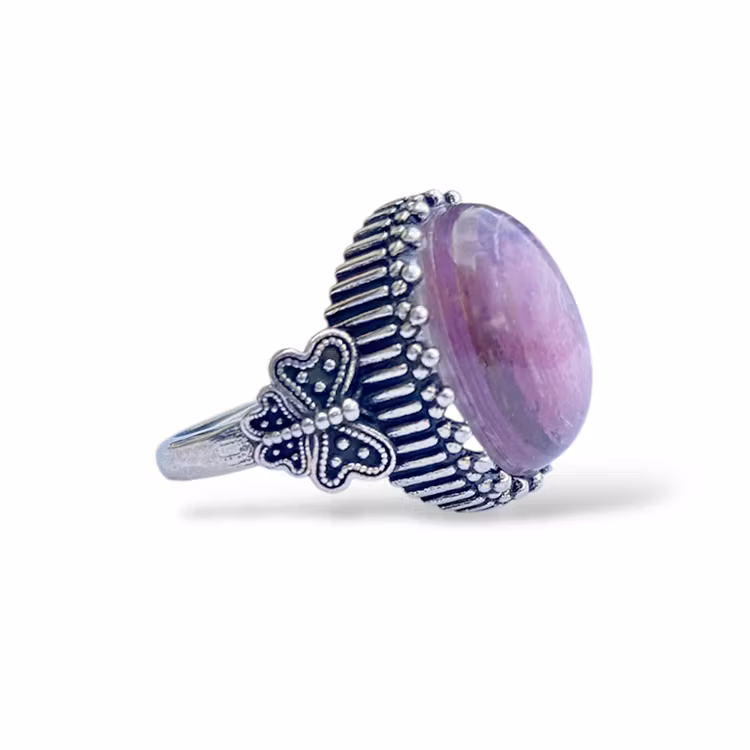 En ställbar ring av legerad koppar med Lepidolit från Kina.