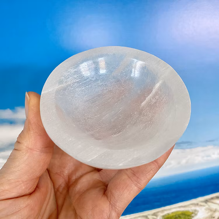 Rena skålen genom att lägga den i ett fönster där månljuset lyser in. Tänk på att selenit är en ömtålig kristall som bör behandlas varsamt för att den inte ska gå sönder eller få märken.
