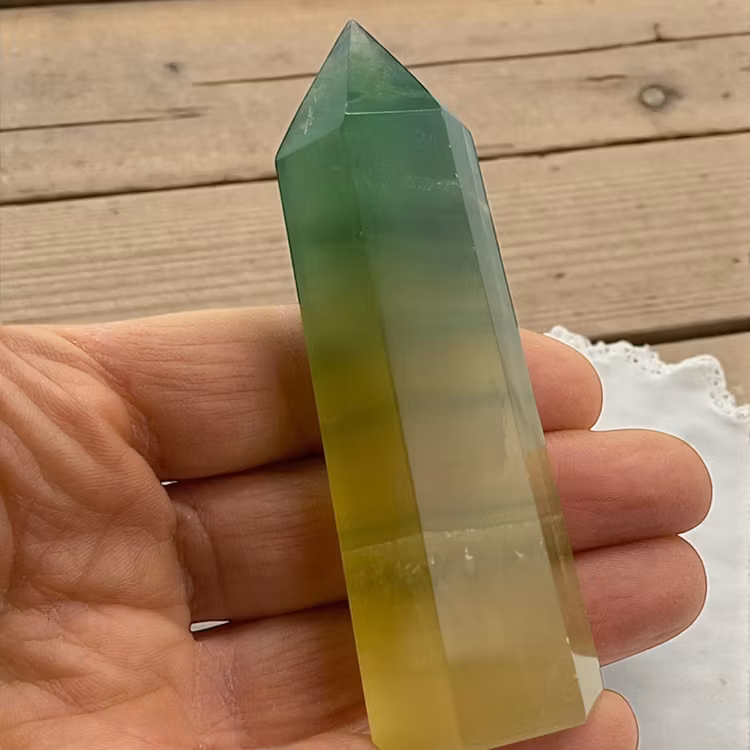 Varje fluoritspets är unik i färg, struktur och uttryck, vilket gör att just din kristall får en alldeles egen karaktär.