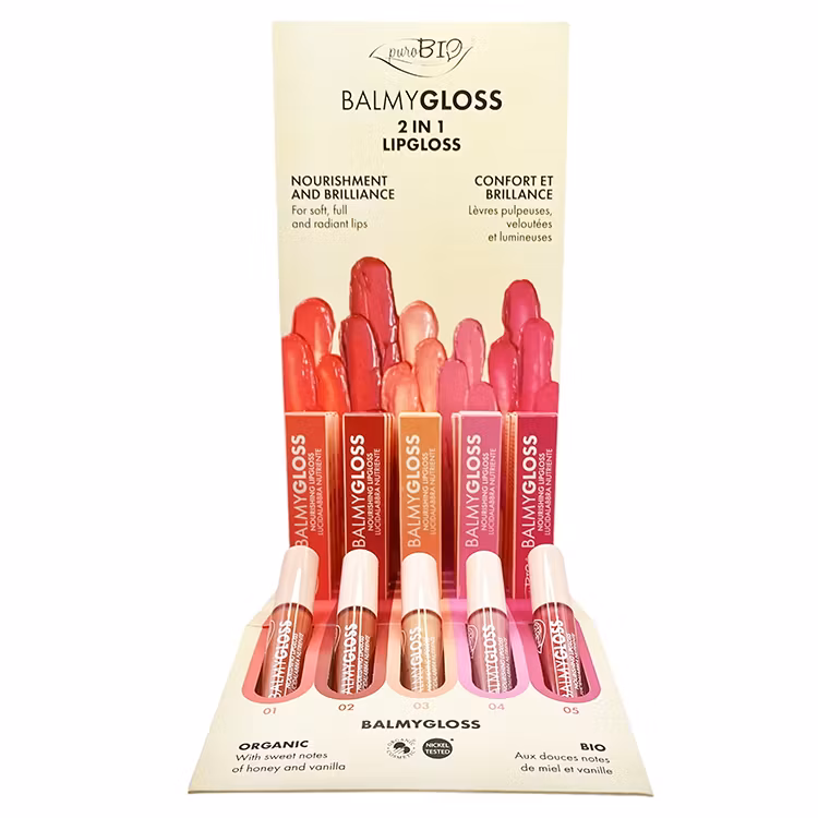 Produktställ för puroBIOs BalmyGloss kollektionen.